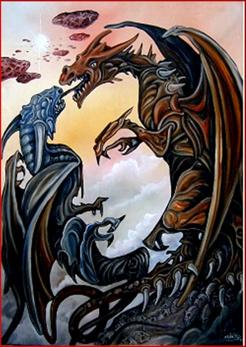 CARACTERISTIQUES Titre : FEMME ET DRAGONS Technique : Huile sur toile Dimensions :90 cm x 70 cm Année: 2017 Référence / numéro d'article : 02017 0007 Prix : PAS A VENDRE! Description : Un repiquage de « ALCHEMY 77 » de Morgan Théomachia. Ca ne m’arrive pas souvent de piquer directement une œuvre existante, mais cela valait la peine….C’est bien de monter sur les épaules des géants, comme dit Stephen Hawking! |