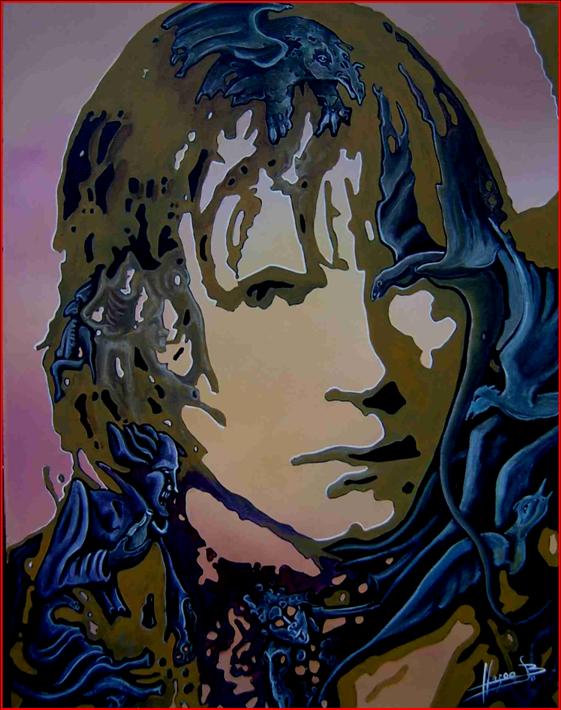 CARACTERISTIQUES Titre : RENAUD Technique : Huile ,acrylique sur toile Dimensions :90 cm x 70 cm Année: 2013 Référence / numéro d'article : 02013 0019 Prix : NON DISPO Description : Un chanteur envahi par ses démons. Il est sans doute le seul à pouvoir faire quelque chose pour lui. N’oublions jamais ce que la chanson française lui doit. En espérant que ces oiseaux noirs s’éloigneront de lui!